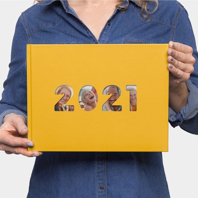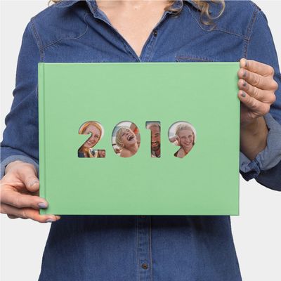 Neben deinen Fotos kannst du auch lustige Bildunterschriften, Zitate oder Erinnerungen an besondere Daten einfügen. Pass die Seiten deines Albums nach Lust und Laune mit Hintergründen und Stickern an, um ihnen eine persönliche Note zu geben, und wähl eine Farbe für das Jahrbuchcover. Die besten Fotos müssen natürlich ganz vorne sein, damit man durch die ausgeschnittene Jahreszahl auf dem Einband auf Anhieb sieht, was in deinem Album steckt.