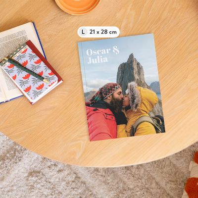 Wähle unser Fotobuch im Hochformat mit einem weichen Einband für einen modernes Design im Magazinstil