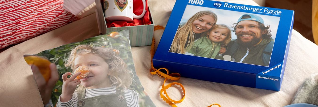 Dank unseres intuitiven Editors ist es kinderleicht, persönliche Geschenke zu gestalten. Alles, was du brauchst, sind deine besten Schnappschüsse und ein paar Klicks, und du kannst im Handumdrehen ein originelles Fotogeschenk erstellen: