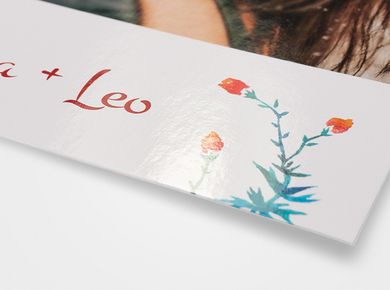Wir verwenden 240 g/m² Papier für die Standard- oder Hochglanz-Ausführung und ein dickes 300 g/m² Premium-Papier für ein extramattes Finish.